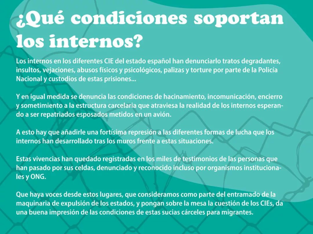 Juan nos ha hecho llegar un vídeo explicando que no le dan el tratamiento farmacológico que tiene prescrito, que no le proporcionan tampoco ningún otro tipo de tratamiento médico ni terapéutico, que ni siquiera le dejan ver a su madre anciana. Dice que tiene «las ganas de quitarse la vida». Juan debería ser excarcelado, debería haberlo sido hace mucho tiempo, porque dentro no puede dejar de recorrer una y otra vez el mismo círculo vicioso, buscarse más condenas, morir poco a poco o de una vez para siempre, por su propia mano o a las de los carceleros.